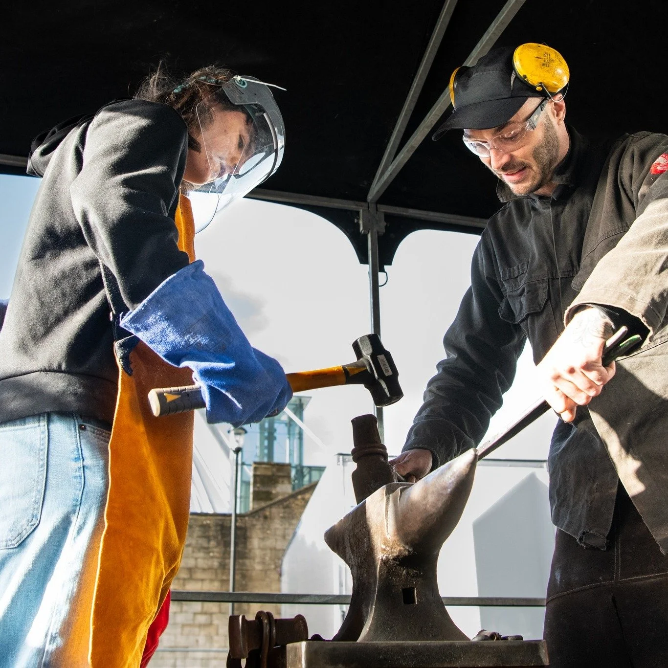 We can bring the forge to you. Have a go at blacksmithing, take something you’ve forged home with you or simply witness expert hot forging in action. With a fully equipped professional forge, we offer taster sessions, workshops and demonstrations for events, festivals, community gatherings and educational settings. Get in touch to book or find out more.